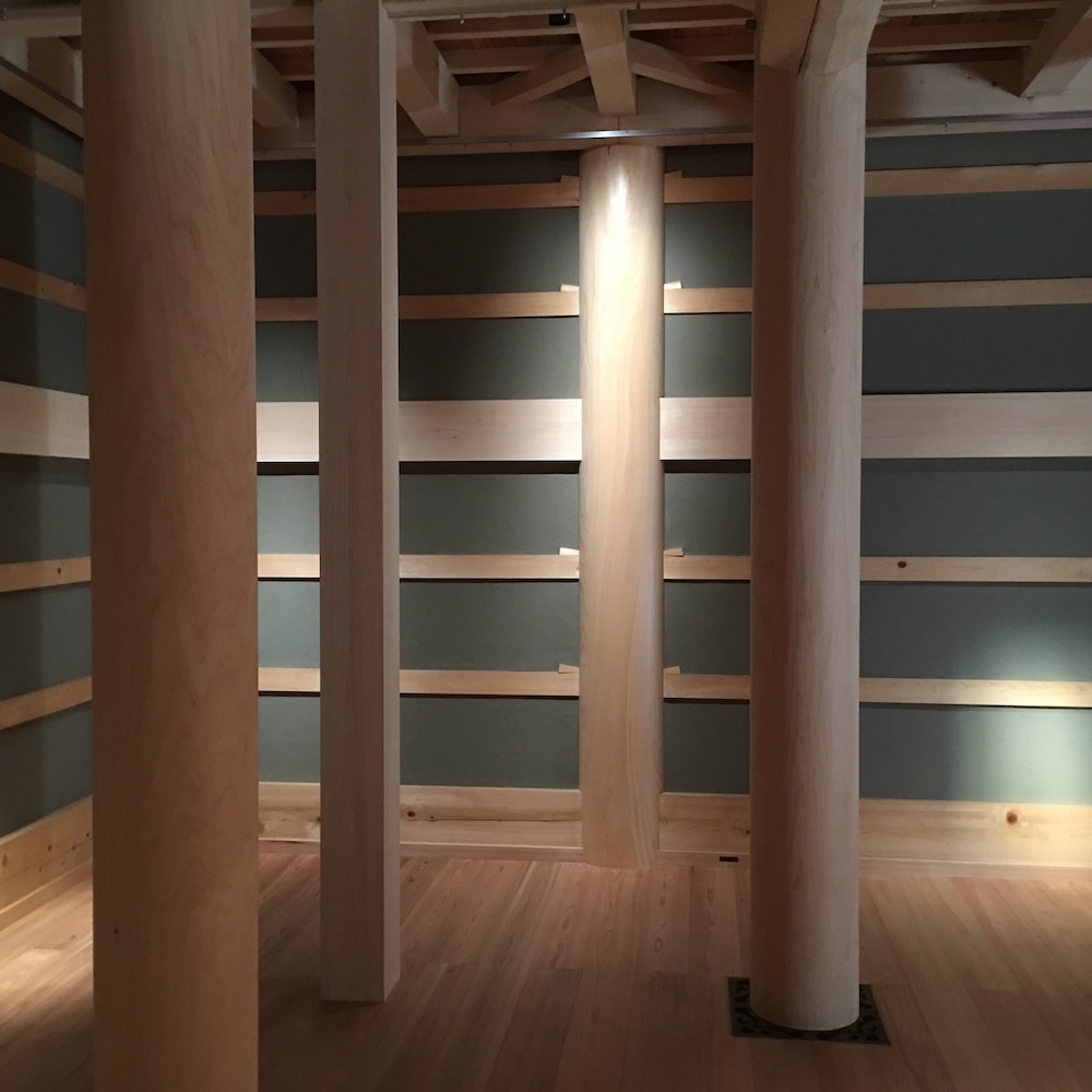 内部が資料館兼展示室となっております。美しい木曽檜の品の良い色合いが展示品を優しく包み込んでいる様です。